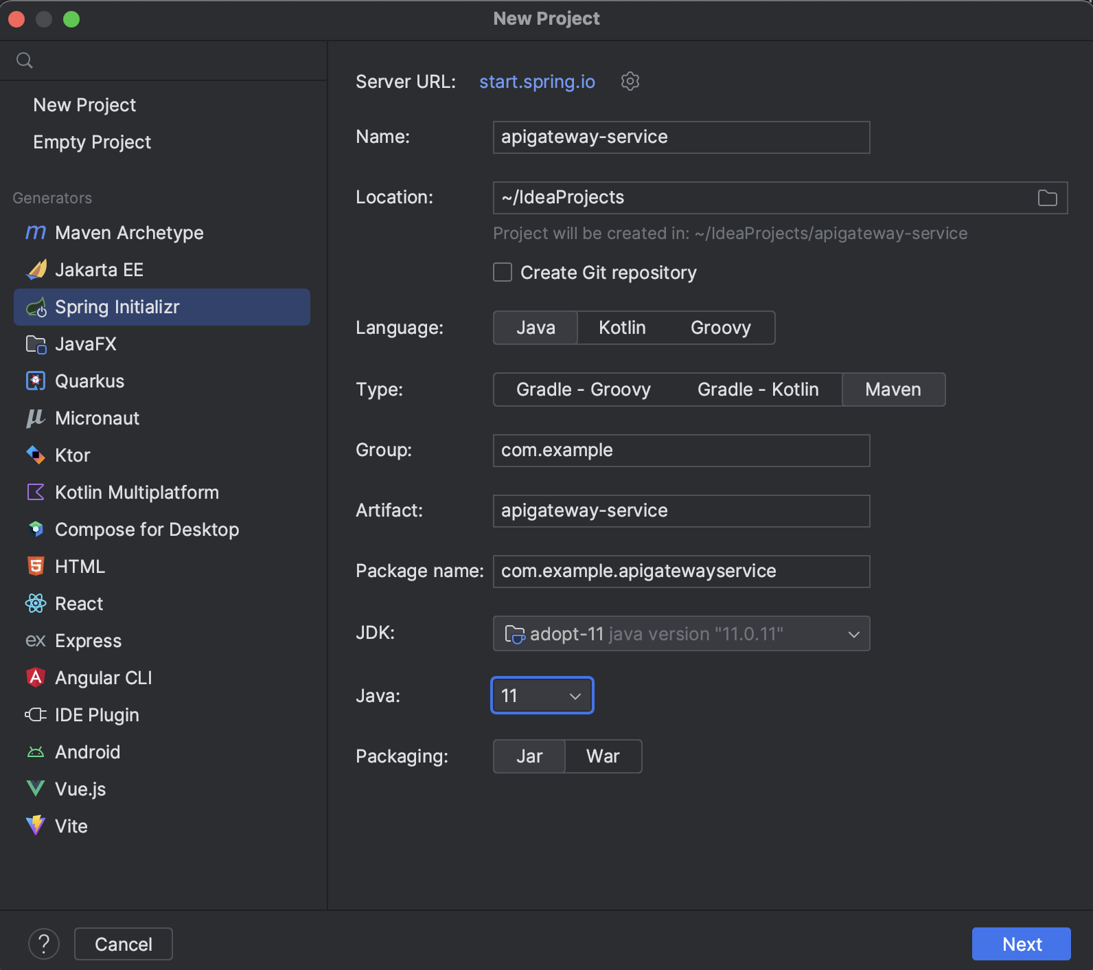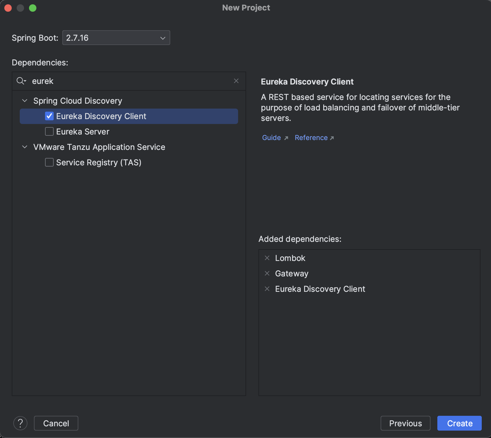 Eureka Discovery Client, Lombok 정도만 추가하여 생성
