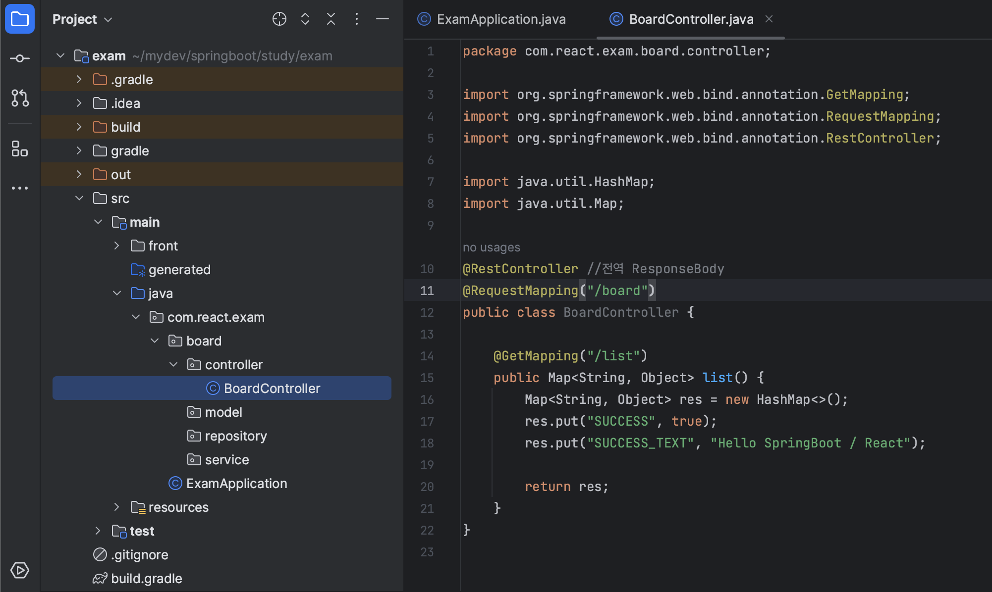 | SpringBoot + React 연동(1) - 스프링부트 + React 설치 (0) | 2023.08.24 |